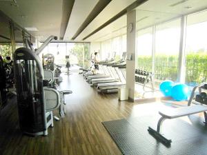 - Fitness center , sauna , swimming pool , recreation area , walking deck