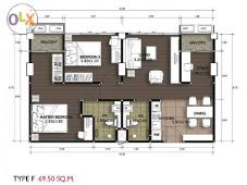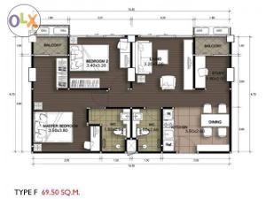 ขนาด 2 ห้องนอน 2 ห้องน้ำ พื้นที่ 69.5 ตร.ม.