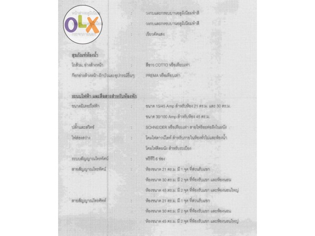 ราคาต่อตารางเมตร บาท/ตารางเมตร