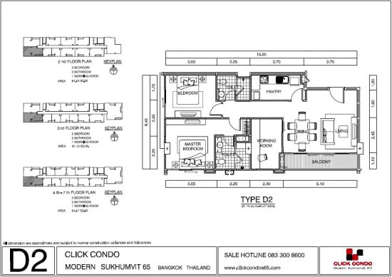 Click Condo 65 for rent 2 bed 2 bath 55 sqm fl.2 Near BTS Ekamai