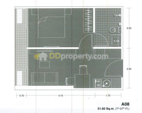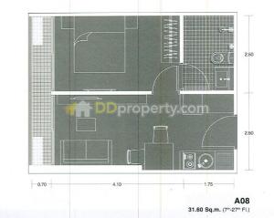 ลักษณะ : มีการแบ่งห้องที่ชัดเจนระหว่างห้องนอน และส่วนที่เป็นห้องรับแขก ซึ่งทั้งสองห้องนี้สามารถเห็นวิวและมีระเบียงหันไปทางรถไฟฟ้า และสวนที่ทางคอนโดจัดไว้ให้