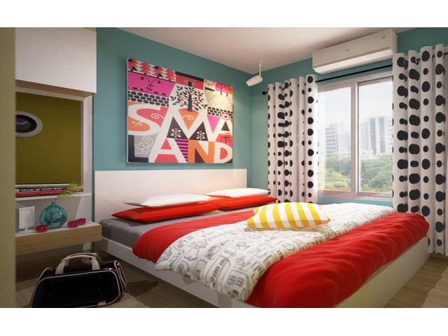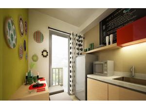 ห้อง 403 พื้นที่ใช้สอย 22.05 ตรม. 1 ห้องนอน 1 ห้องน้ำ พร้อมแอร์ 1 เครื่อง เคาน์เตอร์ห้องครัว