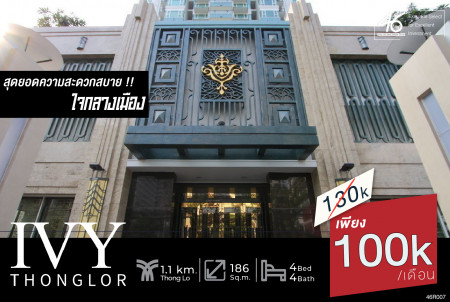 ให้เช่า คอนโด Lage gym large swimming pool IVY ทองหล่อ 23 186 ตรม.