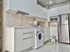 ขายคอนโด Noble Revent ห้องบิ้วอินเคาน์เตอร์ครัว และตู้ชั้นวางในโซนนั่งเล่น