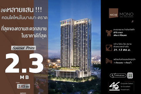 - ชื่อโครงการ: Niche MONO Mega Space Bangna : นิช โมโน เมกะ สเปซ บางนา / Niche MONO Mega Space Bangna