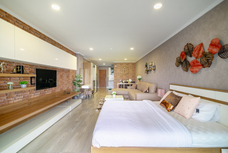เพียง 300 เมตร และข้ามถนนมาถึงชายหาดเพียง 400 เมตร ห้องอยู่ชั้น 5 วิวภูเขา ห้องแต่งครบโดย interior designer พร้อมเฟอร์นิเจอร์ครบ (ตู้ เตียง