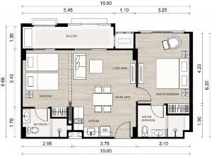 2 ห้องนอน 2 น้ำ มีระเบียงพร้อมวิวสระน้ำ ร่มรื่น เหมาะสำหรับอยู่อาศัย และพักผ่อน หรือ