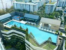วิวสระว่ายน้ำเต็มๆ เห็นจากห้องนอนและห้องนั่งเล่น