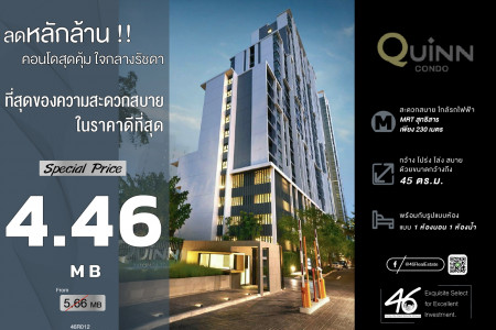 ขาย คอนโด 1 ห้องนอน Quinn Condo รัชดา 17 46.17 ตรม. วิวเมืองไม่บล็อก ราคาต่อรองได้