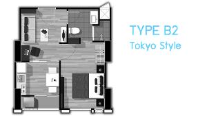 ห้องที่ขาย ชั้น 11 เลขที่ 1109 ตกแต่ง TOKYO STYLE เนื้อที่ 30.80 ตรม. 1 ห้องนอน 1 ห้องน้ำ 1 ห้องรับแขก 1 ห้องครัว