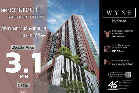 ขาย คอนโด ตรม.ละแสน WYNE by Sansiri 30 ตรม. ราคานี้หาไม่ได้อีกแล้ว