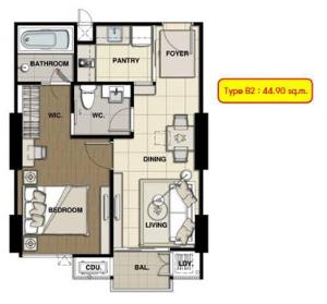 - ชนิด 1 ห้องนอน 1.5 ห้องน้ำ