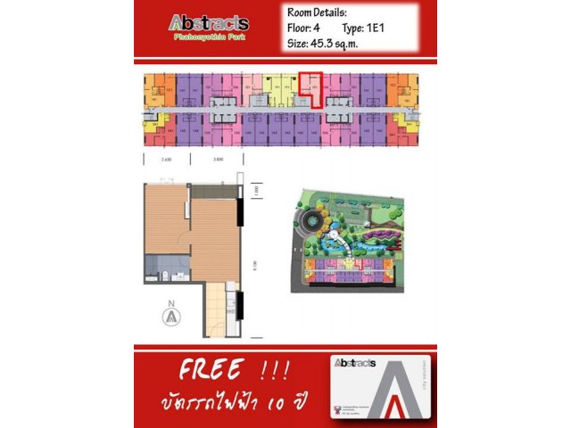 ห้องที่ 2 ราคา 527,000 บาท ชั้น 4 Type 1E1 ขนาด 45.3 ตร.ม. หันทางทิศเหนือ วิวสวน เห็นวิวชัดเจน แถมบัตรรถไฟฟ้าฟรี 10 ปี (BTS) 1 ใบ