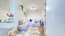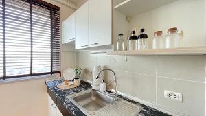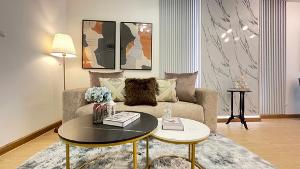 ขายคอนโด Noble Revent 1 ห้องนอน 1 ห้องน้ำ 47.5 ตร.ม. ห้องบิ้วอินเคาน์เตอร์ครัว และตู้ชั้นวางในโซนนั่งเล่น
