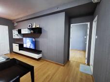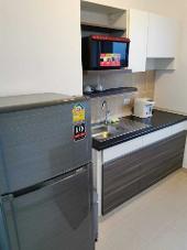 ห้องนอน1 แยกโซนห้องรับแขก ห้องน้ำ1 ห้องนั่งเล่น ห้องครัว ระเบียง พร้อมเฟอร์นิเจอร์บิวอินครบชุด และเครื่องใช้ไฟฟ้า