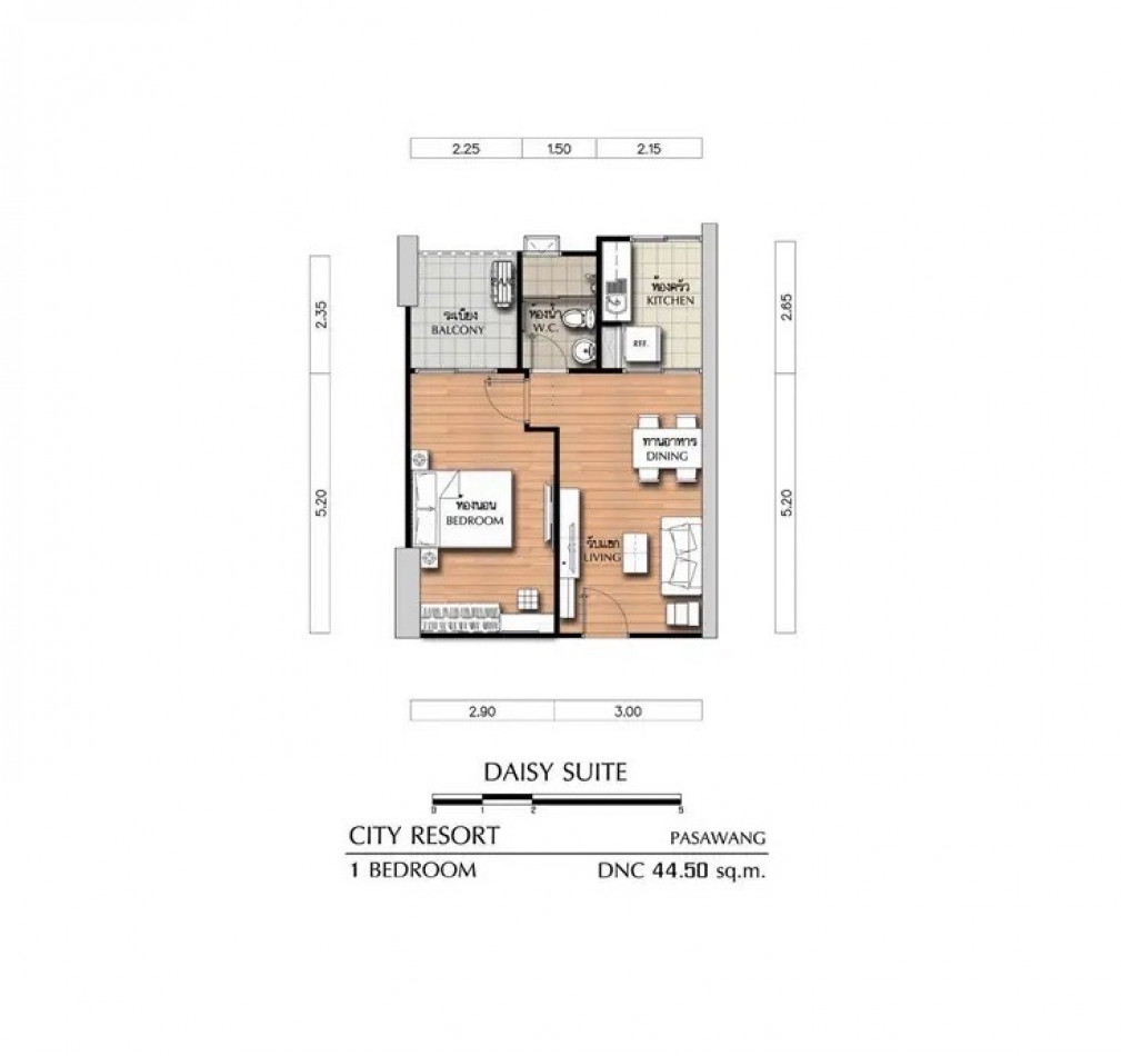 - ชนิด 1 ห้องนอน 1 ห้องน้ำ
