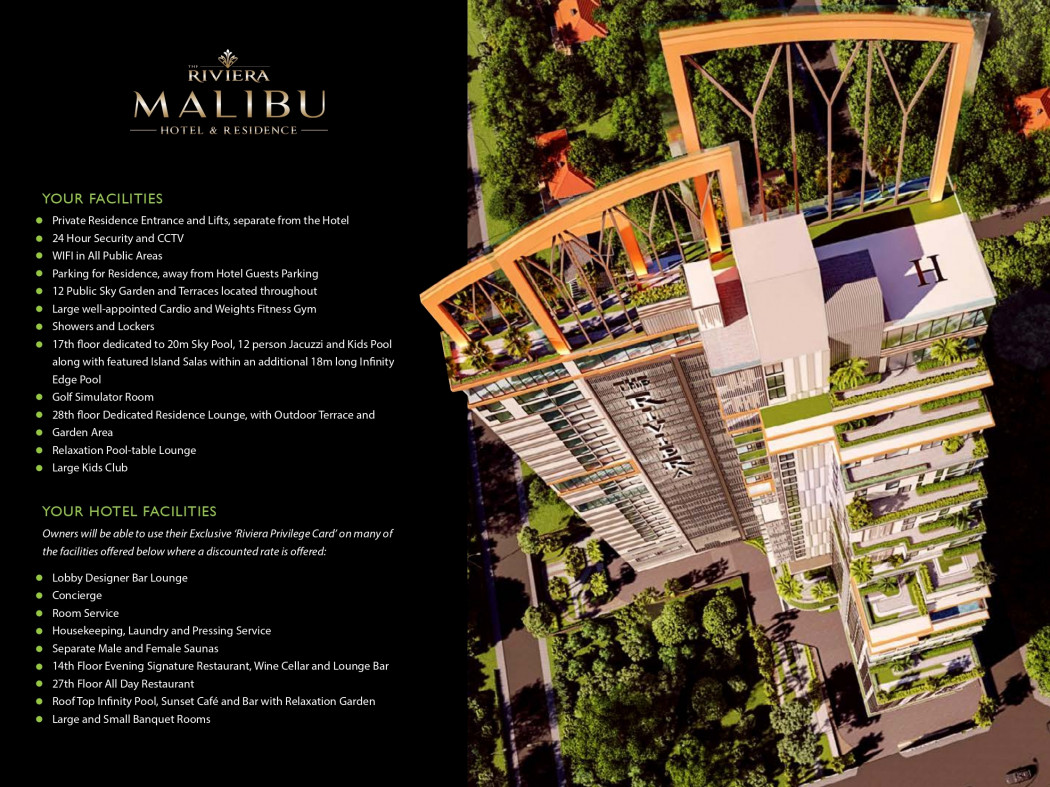 ยินดีต้อนรับสู่เดอะ ริเวียร่า มาลิบู โฮเต็ล แอนด์ เรสซิเดนซ์ โรงแรมและคอนโดมิเนียมหรูสูงระฟ้า ตั้งอยู่บนเขาพระตำหนัก พื้นที่สุดฮอตของพัทยา