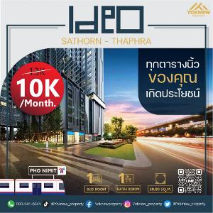JC3277 ให้เช่า คอนโด 1นอน8500บ IDEO สาทร – ท่าพระ 22 ตรม. พร้อมเช่า