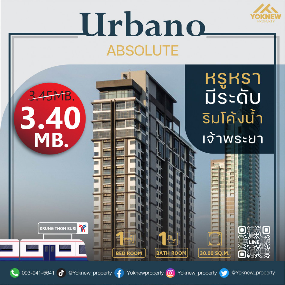 ขายUrbano Absolute ขายพร้อมผู้เช่า เห็นวิวริมโค้งแม่น้ำเจ้าพระยา สวยสุด