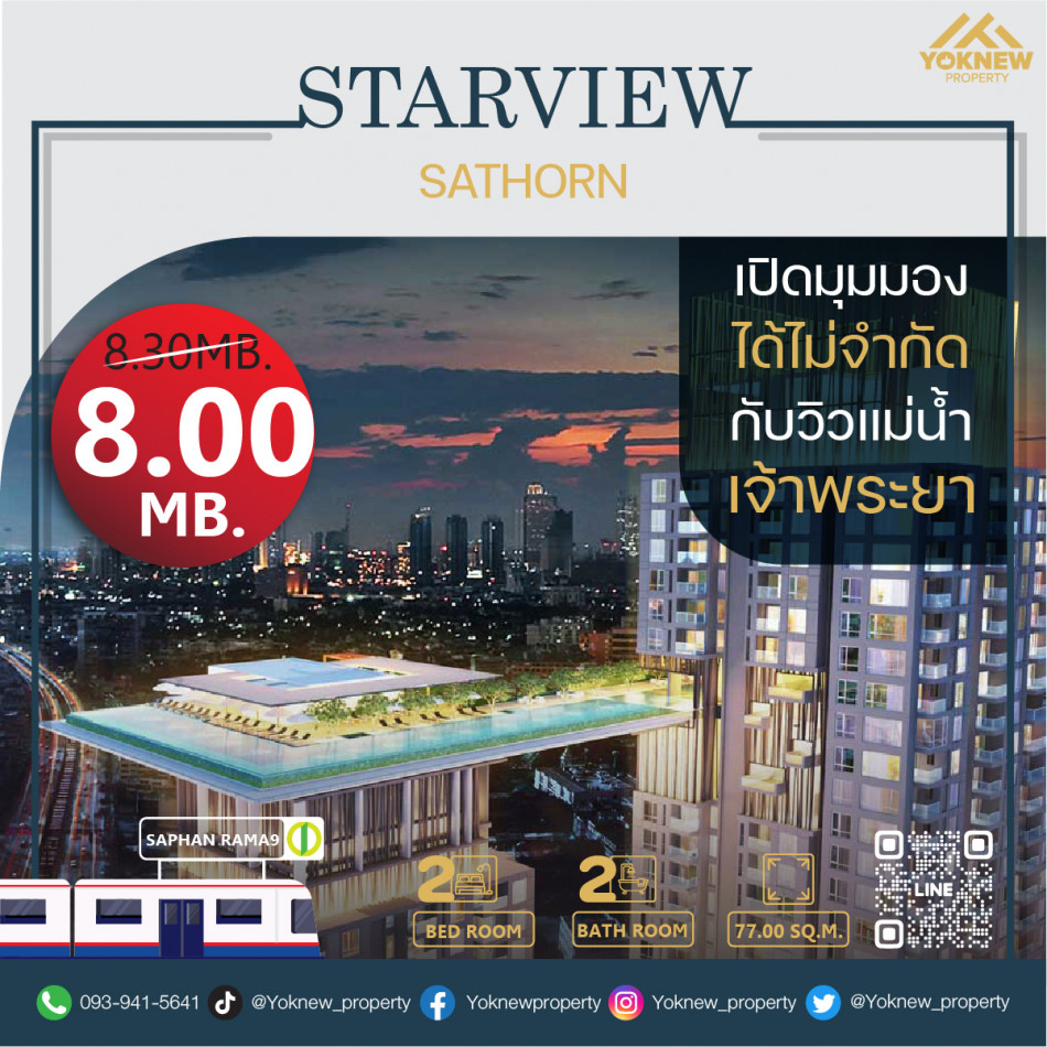ขาย คอนโด สุดฮอท ติดแม่น้ำ StarView พระราม 3 77 ตรม. ได้วิวดีมาก ชั้นสูง ห้องกว้างมาก