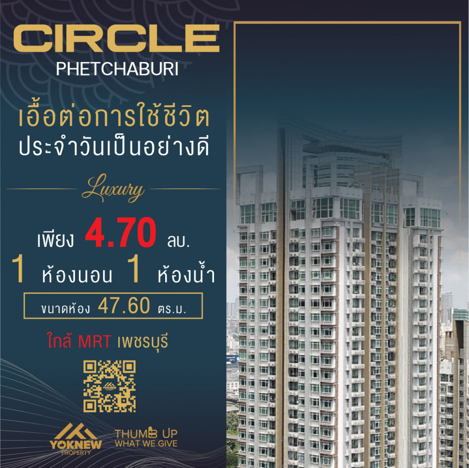 ขาย Circle 1 Petchaburi ห้องขนาดใหญ่ ใกล้ทั้ง MRT และ BTS พร้อมอยู่