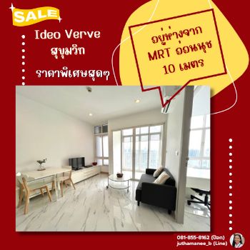 ขาย คอนโด ราคาดีที่สุดIDEO VERVE สุขุมวิท 36.14 ตรม. ติดBTSอ่อนนุช เฟอร์ครบ ห้องน่าอยู่มาก ทำเลทอง