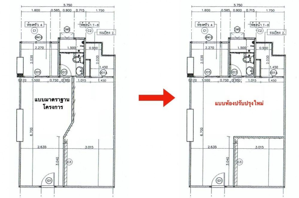 (แบบแปลนพิเศษ ขยายห้องนั้งเล่น ลดขนาดห้องนอน)