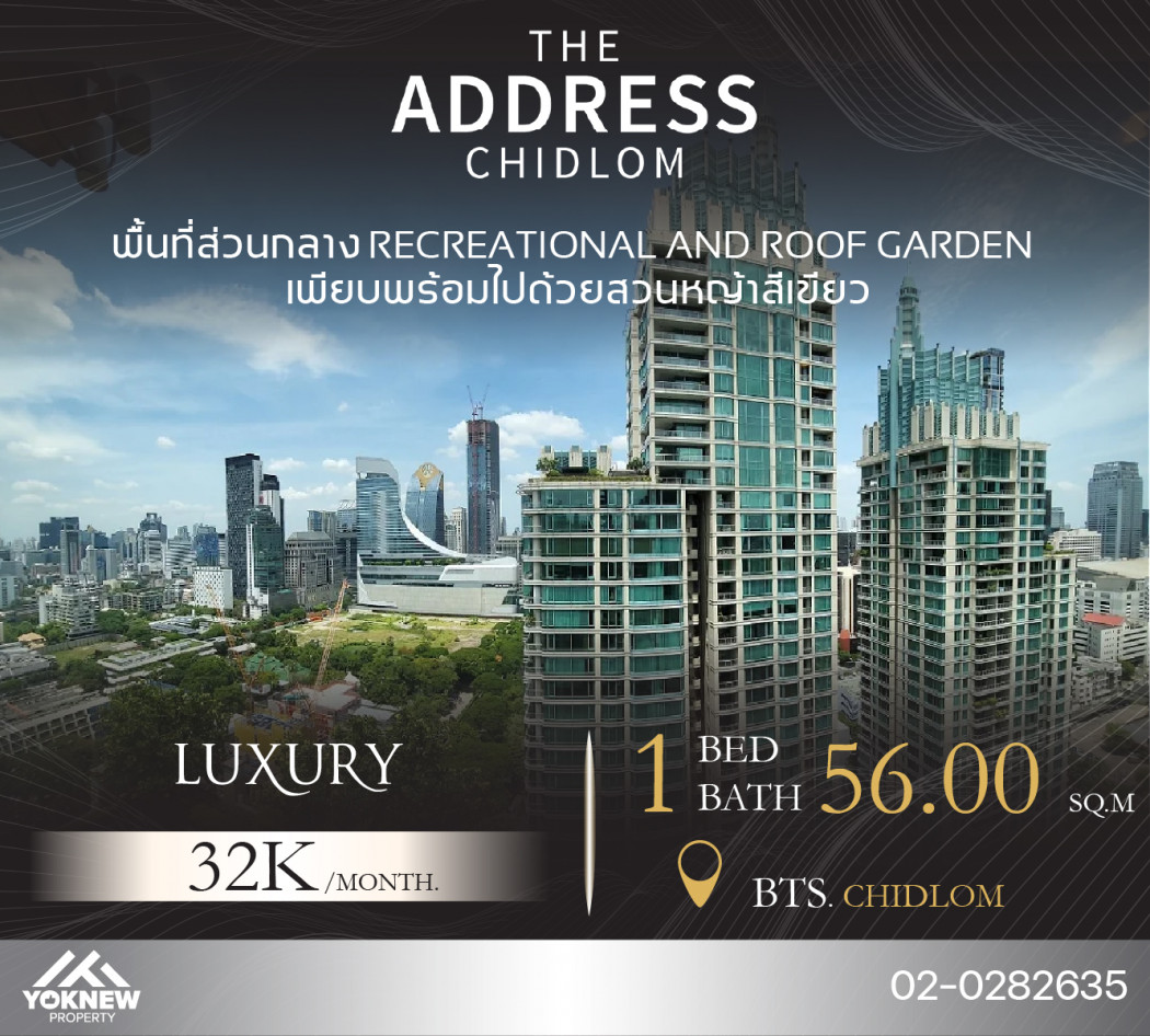 ให้เช่า คอนโด พร้อมอยู่ The Address ชิดลม 58 ตรม. ใจกลางเมือง Line: @wealthora