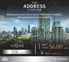 ให้เช่า คอนโด The Address ชิดลม 56 ตรม. 1 นอน 1 น้ำ ค่าเช่า 35000 ต่อเดือน