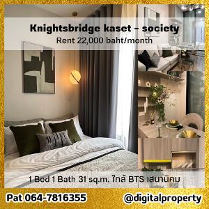 ให้เช่า คอนโด 1 ห้องนอน ห้องใหม่แกะกล่อง เฟอร์ครบ คอนโด ไนท์บริดจ์ เกษตร โซไซตี้ 31 ตรม. ใกล้รถไฟฟ้า BTS เสนานิคม