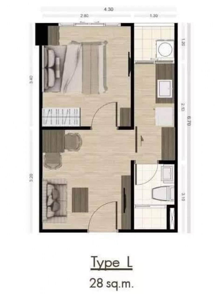 - ชนิด 1 ห้องนอน 1 ห้องน้ำ