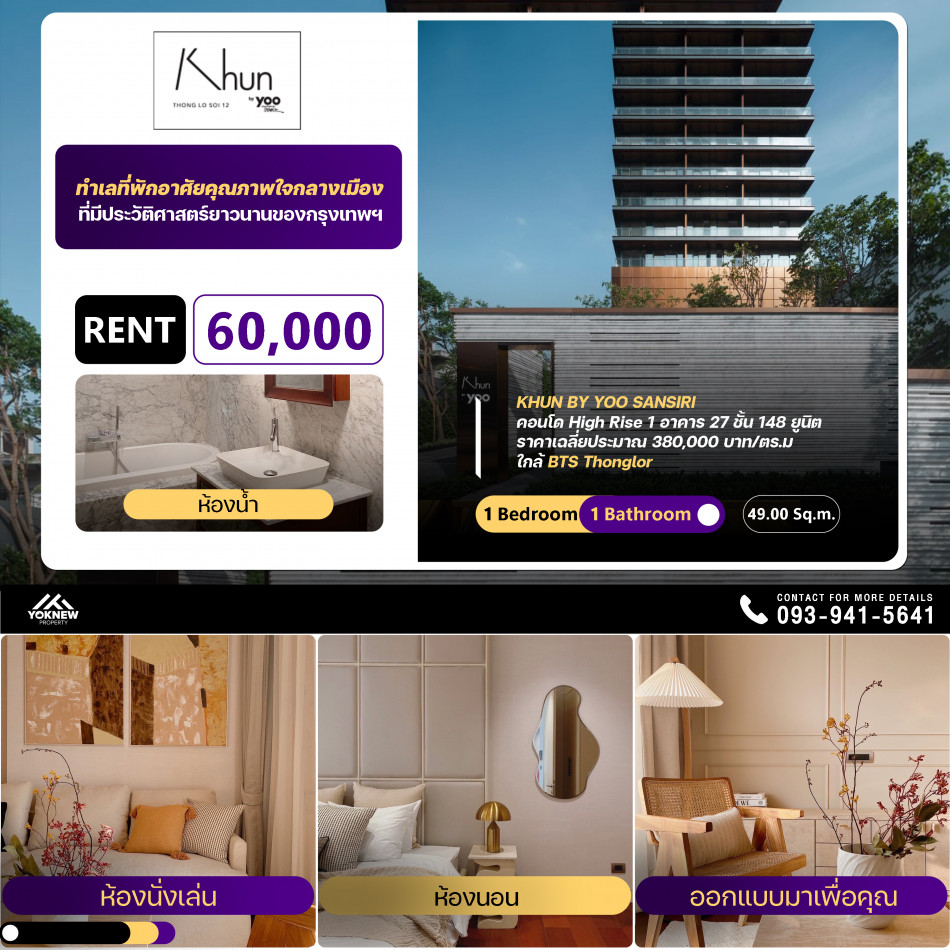ให้เช่า คอนโด KHUN by YOO ทองหล่อ ห้องพร้อมอยู่ ID-14503