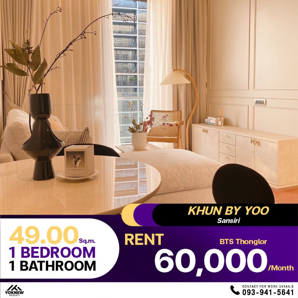 ว่างเช่าห้องสวยมากๆ ห้องขนาด 49 ตร.ม. คอนโด Khun by yoo Sansiriเช่าราคา 63,000 บาท