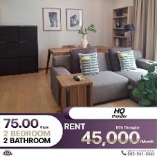 คอนโด HQ Thonglor 2 ห้องนอน 2 ห้องน้ำ ห้องเฟอร์นิเจอร์ครบ เช่าราคา 45,000 บาท