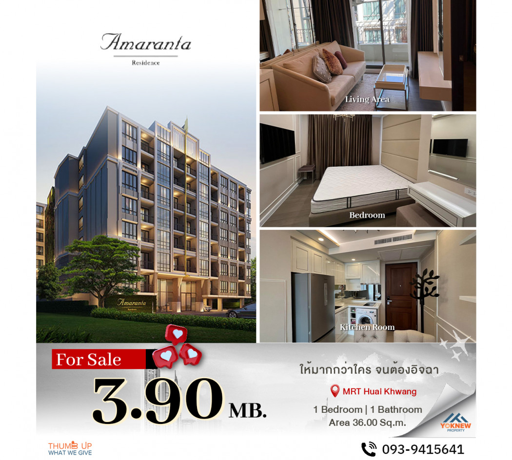 ขายด่วน คอนโด Amaranta Residenceห้องตำแหน่งดี ห้องมุม ขนาด 36 ตร.ม. ให้ความเป็นส่วนตัว