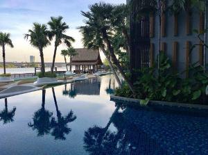 RIVERFRONT POOL – สระว่ายน้ำความยาว 200 เมตร ล้อมรอบอาคาร พื้นที่รวมกว่า 1,000 ตร.ม. พร้อมจากุซซี่และสระเด็ก