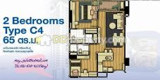 ขนาด 65 ตางรางเมตร 2 ห้องนอน 2 ห้องน้ำ ชั้น 27 แบบห้อง C4