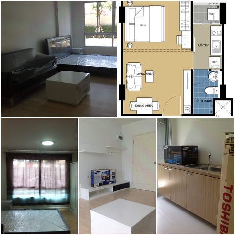 D Condo รามคำแหง 64 ห้องมุม 29 ตร.ม. เฟอร์นิเจอร์-เครื่องปรับอากาศ-ตู้เย็น-ไมโครเวฟ
