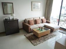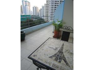 Spacial unit with the biggest balcony in the building.The project is located at Asoke , the most convinient point in the prime business area .This cornered unit is fully furnished with sofa , dining table , kitchen and hood and excellently decorated.