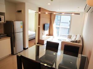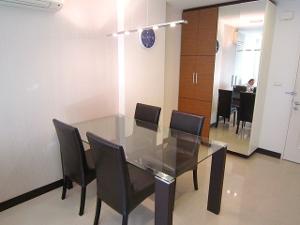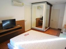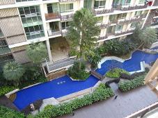 Low rise condominium for rent , 9 storey with centered swimming pool and recreation garden area. This 1-bed on 4th floor , 46 sqm ,fully furnished , built-in kitchen , wooden floor , harden-glass dining table , 2 32' LED TV andfitted with built-in cupboard and cabinet.