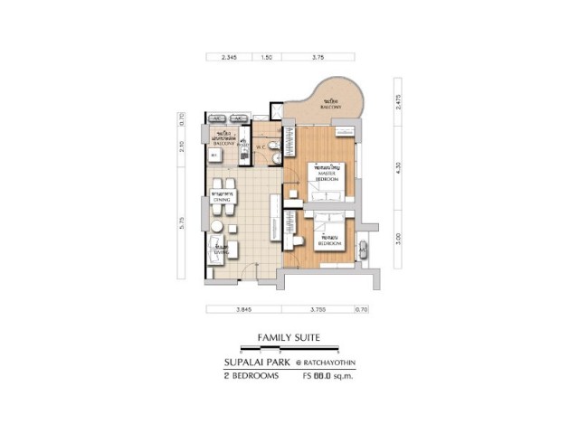 ให้เช่าห้อง 66 ตรม 2Bedroom